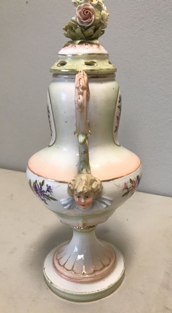 19th Century Hand Painted German Urn/Vase, floral designs, flower lid, 11" 19th Century Hand Painted German Urn/Vase, floral designs, flower lid, 11"