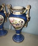 Pair of Sevres Style Mantle Vases Robin Egg Blue w/ Hand Painted Flowers & Ladies on Handles, some age wear, 16"h. Pair of Sevres Style Mantle Vases Robin Egg Blue w/ Hand Painted Flowers & Ladies on Handles, some age wear, 16"h.