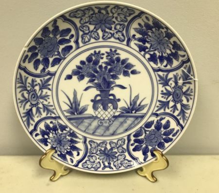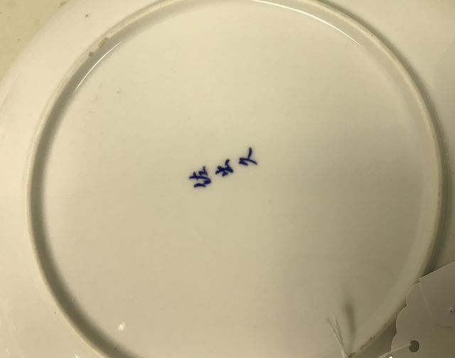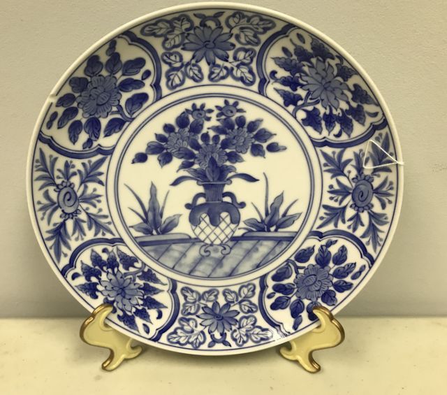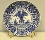 Blue & White Oriental Plate, floral, signed, 10"dia. Blue & White Oriental Plate, floral, signed, 10"dia.