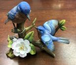 Pair of Blue Birds on a Tree w/ Flower Growing on It by Andrea, "vintage", 8"h. Pair of Blue Birds on a Tree w/ Flower Growing on It by Andrea, "vintage", 8"h.