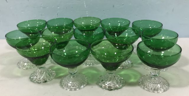 Set of 14 Vintage Anchor Hocking Forest Green "Boopie Burple" Ice Tea Glass, some have different style bases, 4"h. Set of 14 Vintage Anchor Hocking Forest Green "Boopie Burple" Ice Tea Glass, some have different style bases, 4"h.