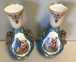 Pair of Old Paris Vases Unusual Shape, portrait imagery art, hand painted, gold gilt, blue, marked on bottom, 17"h. Pair of Old Paris Vases Unusual Shape, portrait imagery art, hand painted, gold gilt, blue, marked on bottom, 17"h.