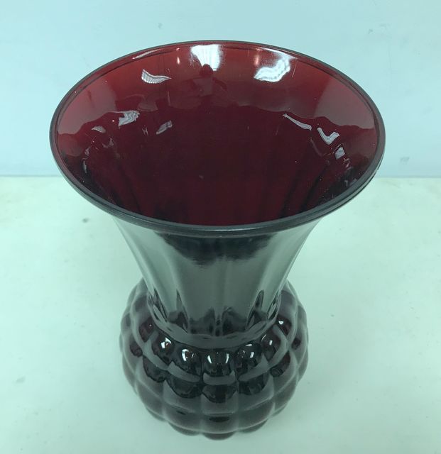 Vintage Large Ruby Red Vase Bubbles Design on Bottom by Anchor Hocking H: 9" Vintage Large Ruby Red Vase Bubbles Design on Bottom by Anchor Hocking H: 9"