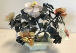 Vintage Chinese Carved Hard Stone Bonsai Flowers Potted Jade Tree, 9"h. Vintage Chinese Carved Hard Stone Bonsai Flowers Potted Jade Tree, 9"h.