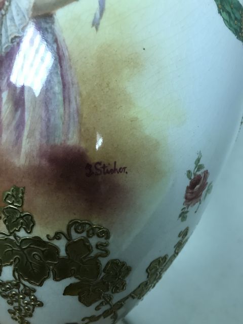 1637 Victorian Style Mantle Vase Hand Painted & Signed by Artist 18" tall