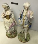 1701 Pair of Antique Bisque Figurines Lady & Gentleman 20" tall