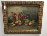 1788 Antique Oil on Canvas in Gold Frame Roses in Basket