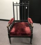 19th Century Walnut Spool Chair Red Velvet Upholstery, spindle back, normal age wear, 43"h 19th Century Walnut Spool Chair Red Velvet Upholstery, spindle back, normal age wear, 43"h