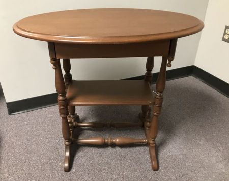 Vintage Walnut Oval Table w/ Drawer, two tier, oval top, 27"h., 30"w. Vintage Walnut Oval Table w/ Drawer, two tier, oval top, 27"h., 30"w.