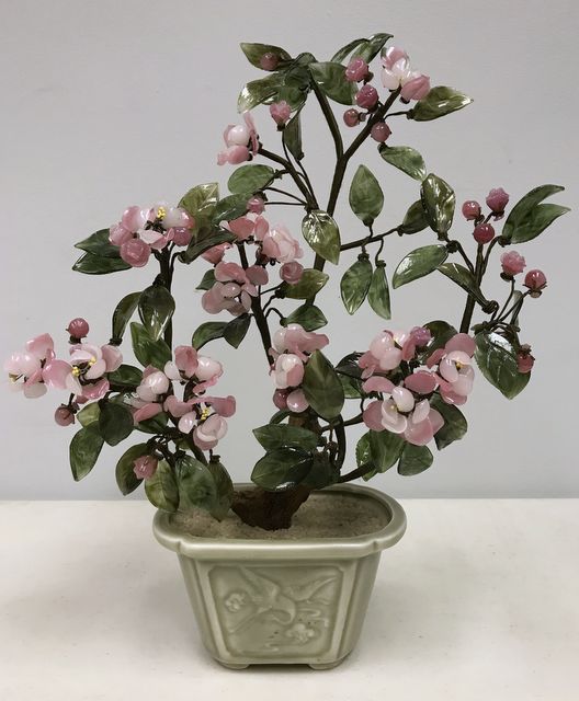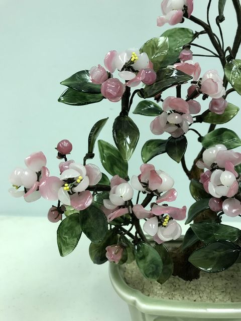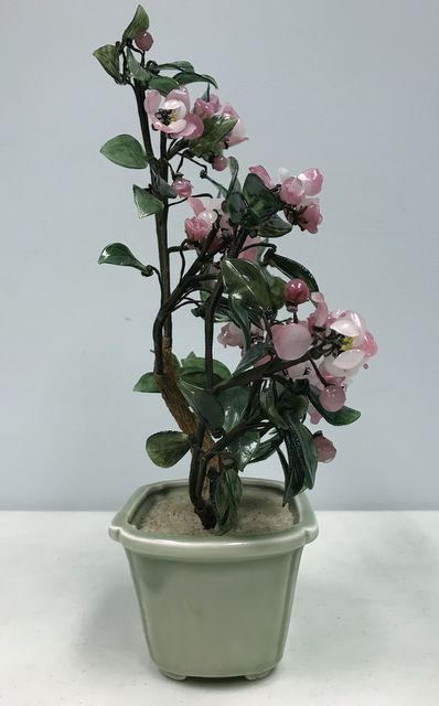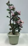 Vintage Japanese Carved Jade White Pink Cherry Blossom Tree, H: 14" Vintage Japanese Carved Jade White Pink Cherry Blossom Tree, H: 14"