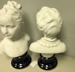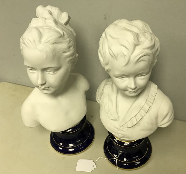 Pair of Goumot Labesse Busts Boy & Girl, Limoges France, 15"h. Pair of Goumot Labesse Busts Boy & Girl, Limoges France, 15"h.