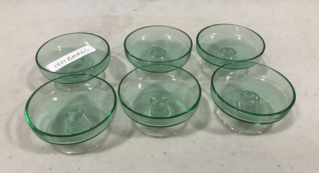 Set of 6 Steuben Art Glass Salts, footed, 1"h., 2 1/2"dia. Set of 6 Steuben Art Glass Salts, footed, 1"h., 2 1/2"dia.