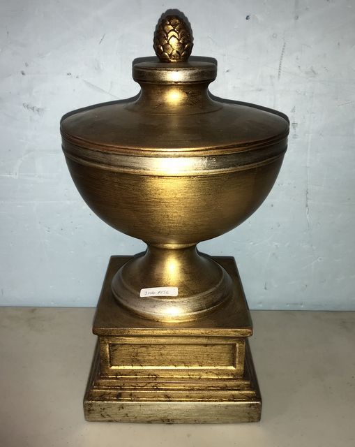 Large Gold Plaster Urn, gold gilt painted, modern decor, 19"h. Large Gold Plaster Urn, gold gilt painted, modern decor, 19"h.