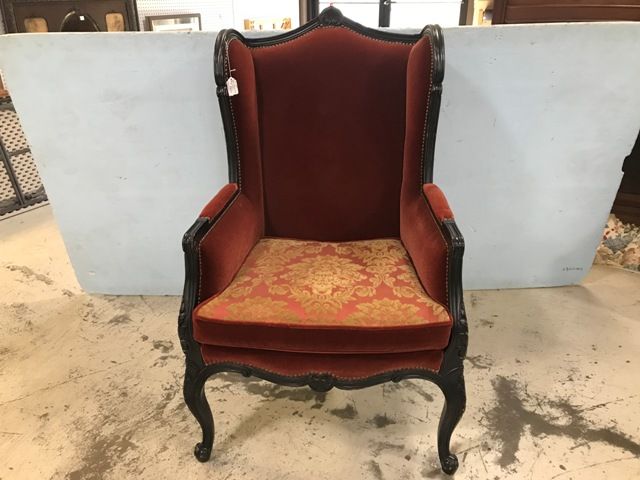 2001a 20th Century Black Wood Red Velvet Parlor Chair