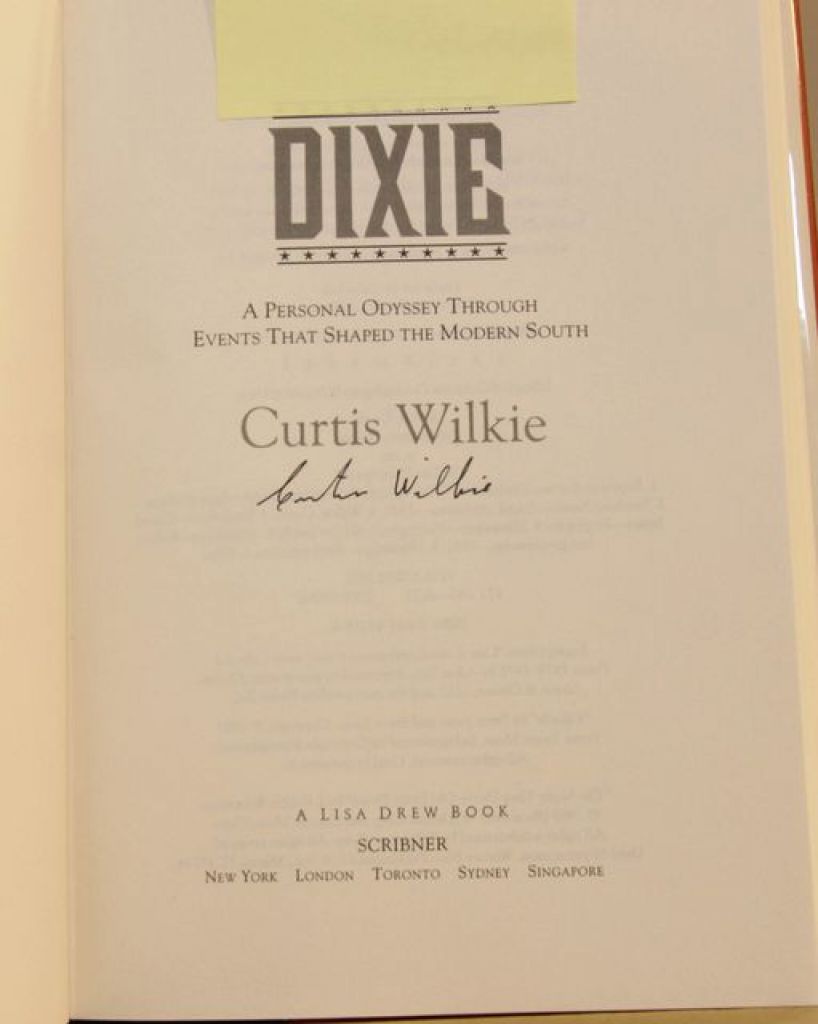 Signed by Curtis Wilkie, 2001 Signed by Curtis Wilkie, 2001