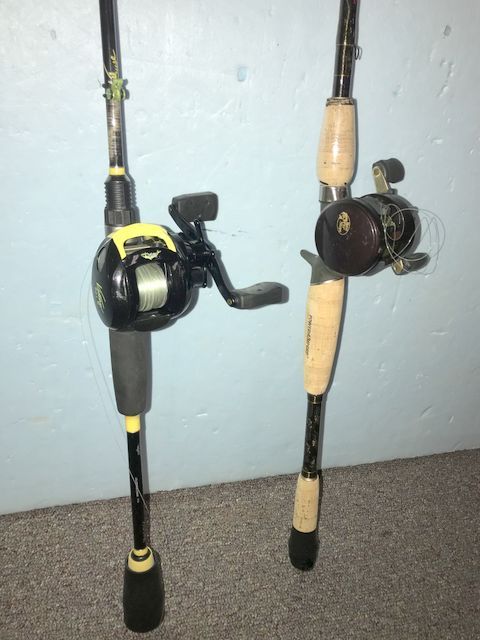 Victory 621 with Skut Reese rod and Bass Pro TSP100H with pro finesse 7'6 rod. Victory 621 with Skut Reese rod and Bass Pro TSP100H with pro finesse 7'6 rod.