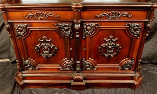 Meeks rosewood side cabinet in mint condition, 75 in. T, 61 in. W, 15 in. D. Meeks rosewood side cabinet in mint condition, 75 in. T, 61 in. W, 15 in. D.