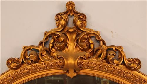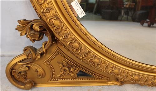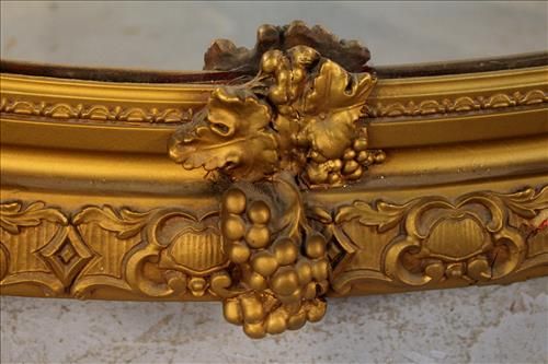 Oval gold Victorian over the mantle mirror with great detail of flowers and grapes, 61 in. T, 70 in. W Oval gold Victorian over the mantle mirror with great detail of flowers and grapes, 61 in. T, 70 in. W