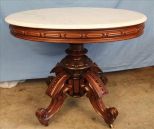 Matching pair marble top Victorian walnut tables attar. to Brooks, 31 in. T, 38 in. W, 29 in. D. Matching pair marble top Victorian walnut tables attar. to Brooks, 31 in. T, 38 in. W, 29 in. D.