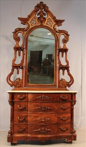Rosewood rococo marble top dresser with hand carved grapevine pulls by Mitchell & Rammelsberg, 8 ft. 11 in. T, 53 in. W, 22 in. D. Rosewood rococo marble top dresser with hand carved grapevine pulls by Mitchell & Rammelsberg, 8 ft. 11 in. T, 53 in. W, 22 in. D.