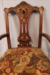 Early heavy mahogany Chippendale dining chairs with heavy carved back, ca. 1880, 44 in. T, 26 in. W, 20 in. D. Early heavy mahogany Chippendale dining chairs with heavy carved back, ca. 1880, 44 in. T, 26 in. W, 20 in. D.