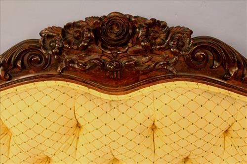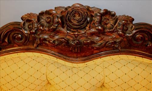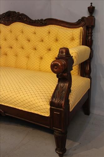 Rosewood Victorian sofa with yellow upholstery, 38 in. T, 74 in. W, 22 in. D. Rosewood Victorian sofa with yellow upholstery, 38 in. T, 74 in. W, 22 in. D.