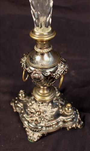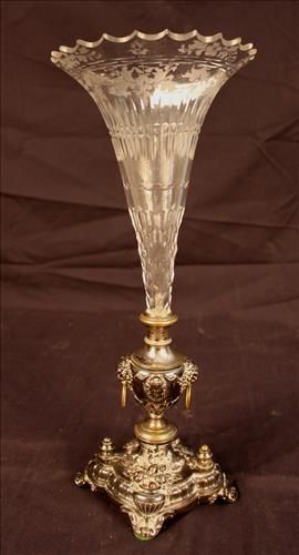 Cut glass and silver-plate epergne with trumpet, 15 in. T, 6 in. D. Cut glass and silver-plate epergne with trumpet, 15 in. T, 6 in. D.