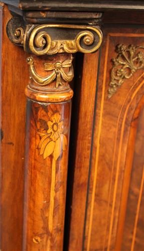 Victorian aesthetic movement side cabinet with inlay and bronze mounts, 45 in. T, 33 in. W, 18 in. D. Victorian aesthetic movement side cabinet with inlay and bronze mounts, 45 in. T, 33 in. W, 18 in. D.