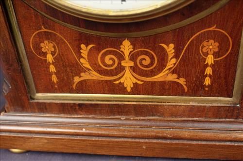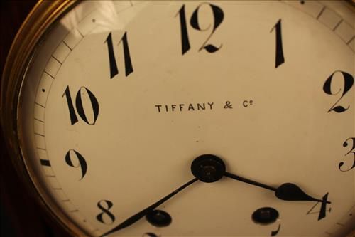 117 Tiffany inlaid mahogany clock, signed Tiffany