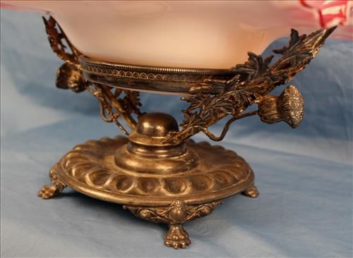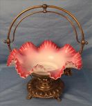 Victorian brides basket with pink and white bowl, 15 in. T, 12 in. D. Victorian brides basket with pink and white bowl, 15 in. T, 12 in. D.