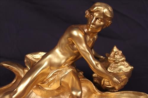 Gold Dore bronze inkwell, 8 in. T, 13 in. W, 7 in. D. Gold Dore bronze inkwell, 8 in. T, 13 in. W, 7 in. D.