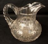 Cut glass pitcher with zipper cut, 7 in. T, 9 in. W. Cut glass pitcher with zipper cut, 7 in. T, 9 in. W.