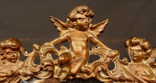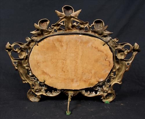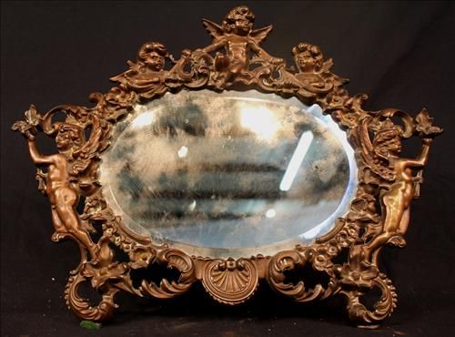 Bronze shaving mirror, 13 in. T, 17 in. W. Bronze shaving mirror, 13 in. T, 17 in. W.