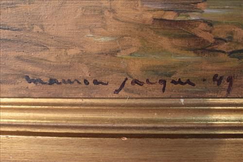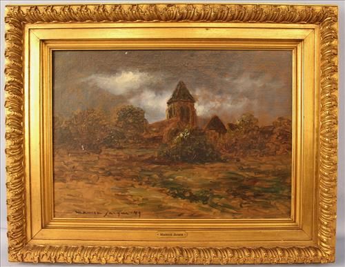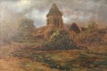 Oil on canvas of church scene, 19 x 25 Oil on canvas of church scene, 19 x 25