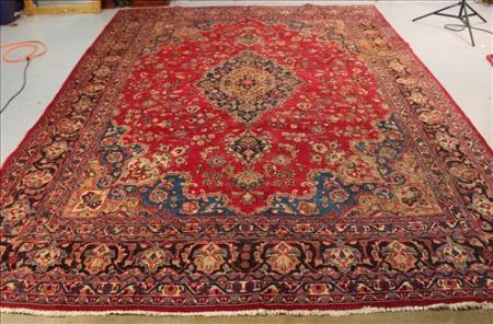 Handmade Persian rug in red, blue and tan, 9.7 x 12.9 Handmade Persian rug in red, blue and tan, 9.7 x 12.9
