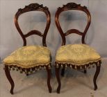 Matched pair Victorian balloon back parlor chairs with carved grapes in backs, 35 in. T, 17 in. W, 17 in. D. Matched pair Victorian balloon back parlor chairs with carved grapes in backs, 35 in. T, 17 in. W, 17 in. D.