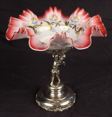 Figural brides bowl with cupid signed Standard Silver Company, 12 in. T, 12 in. D. Figural brides bowl with cupid signed Standard Silver Company, 12 in. T, 12 in. D.