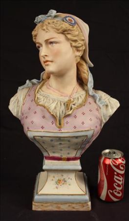 Large hand painted porcelain bust, 19 in. T. Large hand painted porcelain bust, 19 in. T.