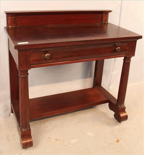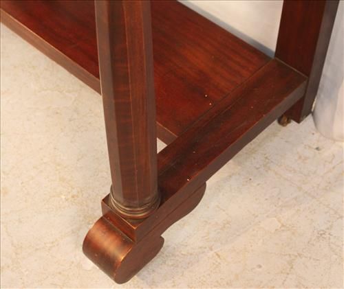 Mahogany Empire server with scroll feet and columns, 39 in. T, 40 in. W, 21 in. D. Mahogany Empire server with scroll feet and columns, 39 in. T, 40 in. W, 21 in. D.