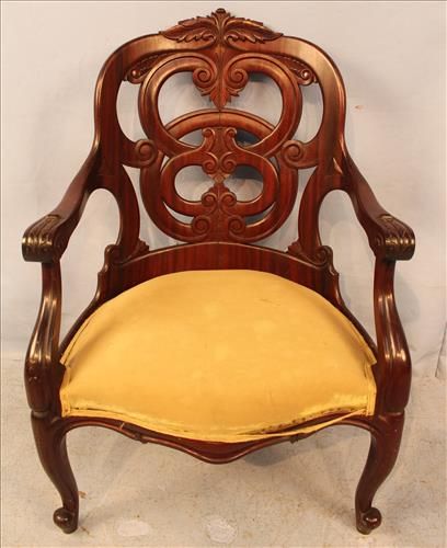 Laminated Springmeier armed parlor chair, 38 in. T, 26 in. W, 21 in. D. Laminated Springmeier armed parlor chair, 38 in. T, 26 in. W, 21 in. D.