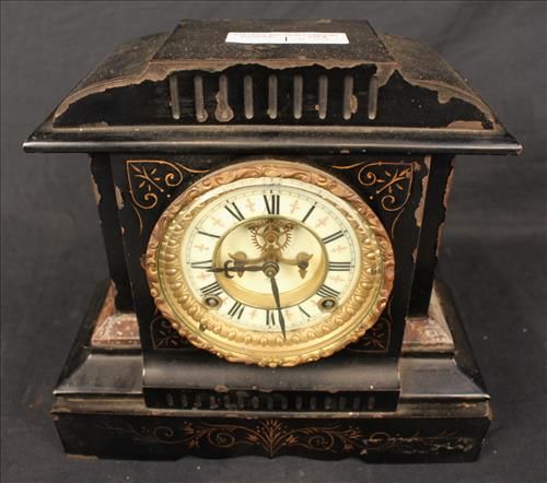 379 Victorian Metal mantle clock, 12 in. T, 10 in. W.
