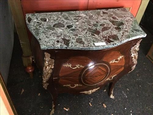 Small French Bombay commode with inlay and green marble Small French Bombay commode with inlay and green marble