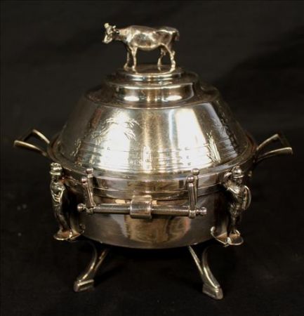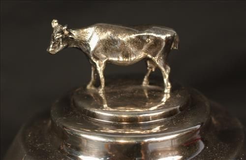Victorian butter dish with cow on top, 8 in. T, 8.5 in. W. Victorian butter dish with cow on top, 8 in. T, 8.5 in. W.