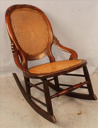 Walnut Victorian lace cane rocker, 33 in. T, 21 in. W, 19 in. D. Walnut Victorian lace cane rocker, 33 in. T, 21 in. W, 19 in. D.