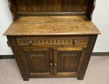 Primitive Welsh Cabinet, two piece, oak, single drawer, double door, some age wear. Great size, 68" h., 39" w. 17" d. Primitive Welsh Cabinet, two piece, oak, single drawer, double door, some age wear. Great size, 68" h., 39" w. 17" d.