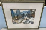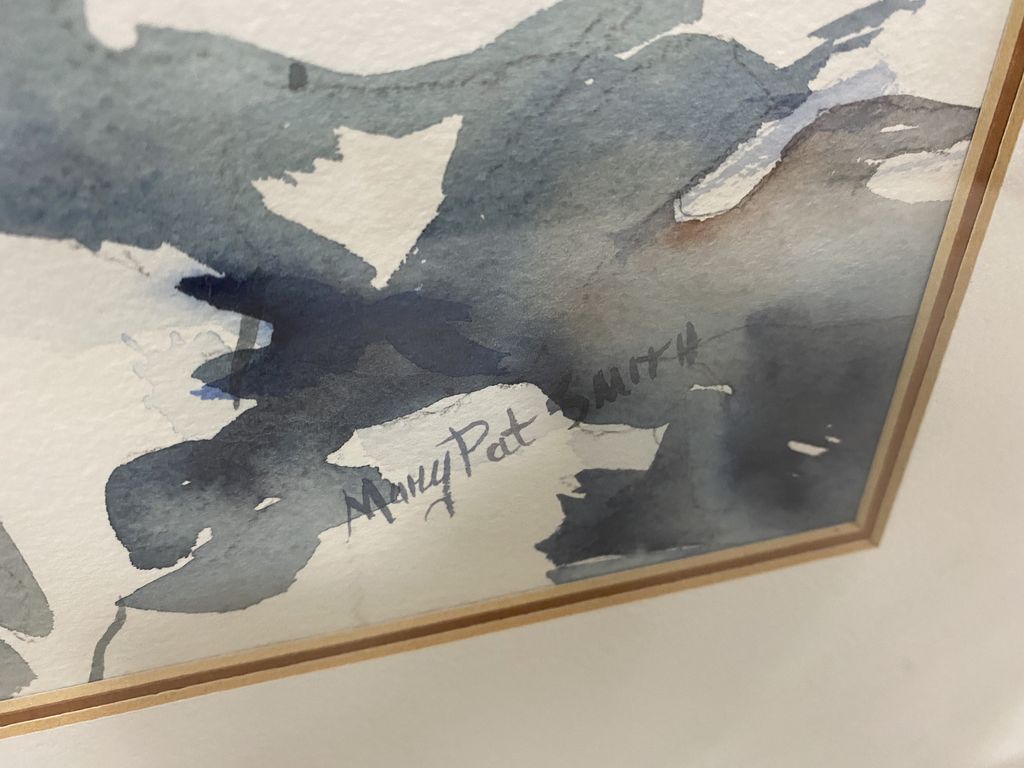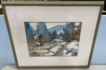 Mary Pat Smith Landscape Watercolor, matted, glass, signed lower right, framed, 22"h., 26"w. Mary Pat Smith Landscape Watercolor, matted, glass, signed lower right, framed, 22"h., 26"w.
