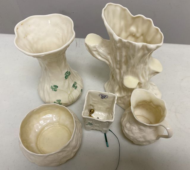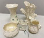 Five Pieces of Belleek Porcelain, Holland, creamer, bowls, toothpick holder, vases. tallest is 6"h. Five Pieces of Belleek Porcelain, Holland, creamer, bowls, toothpick holder, vases. tallest is 6"h.