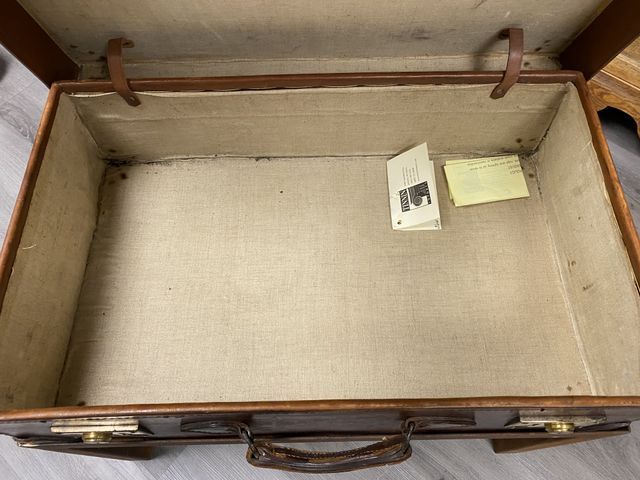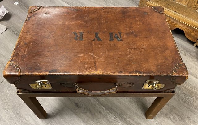 228 MYR Initialed Leather Suitcase on Stand