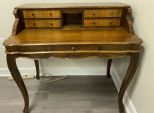 French Style Ladies Mahogany Writing Desk, single drawer, four drawers, good condition. 37" h., 22" w., 38" d. French Style Ladies Mahogany Writing Desk, single drawer, four drawers, good condition. 37" h., 22" w., 38" d.