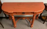 Factory Painted Demi Lune Console Table, modern piece, single drawer, has finish wear. 31" h., 47" w., 18" d. Factory Painted Demi Lune Console Table, modern piece, single drawer, has finish wear. 31" h., 47" w., 18" d.